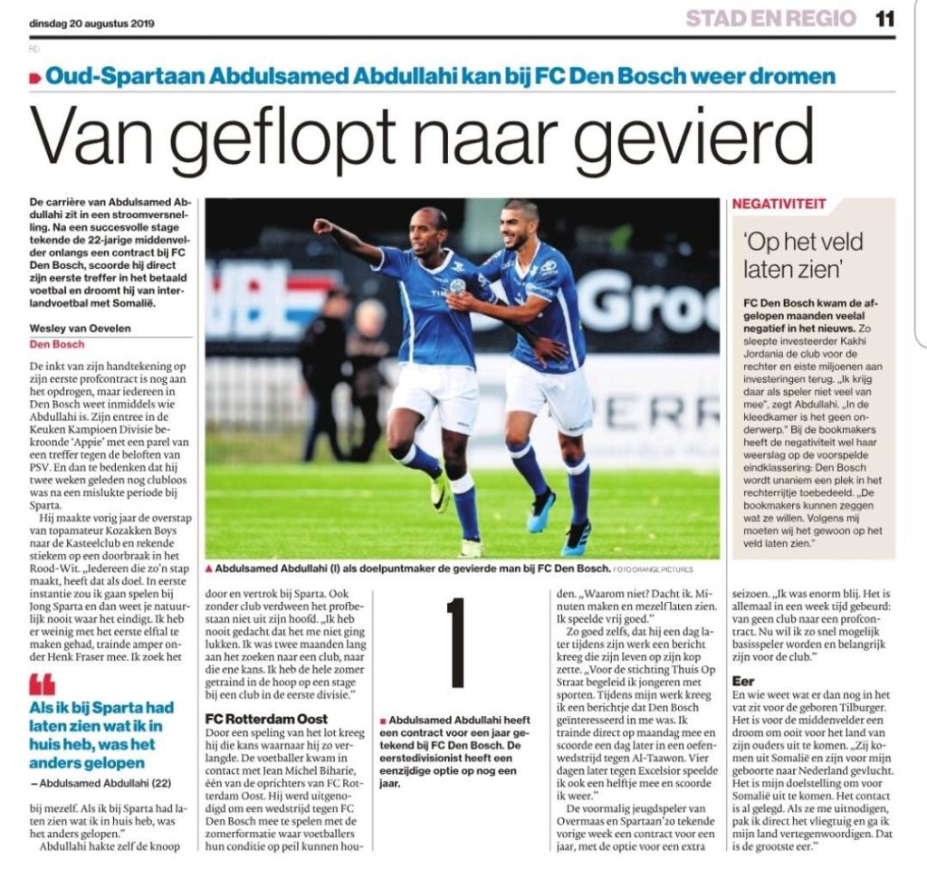 Lees meer over het verhaal achter Abdullahi in zijn interviews in het AD en op het F.C. Den Bosch website.