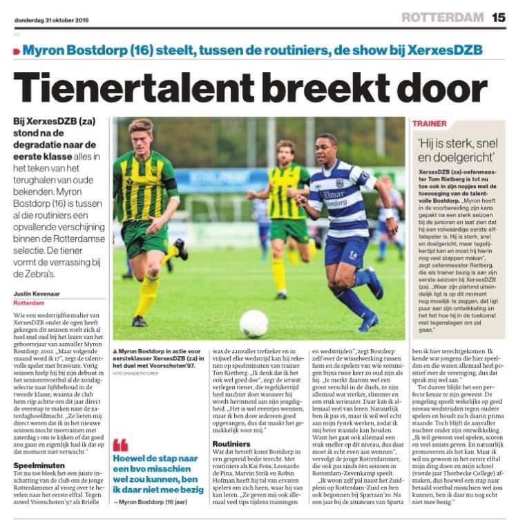 Met zijn zestien lentes jong en een vaste basisplaats in de 1e Klasse senioren heeft M. Bostdorp een mooi verhaal te vertellen dat in het volgende krantenartikel te lezen is.